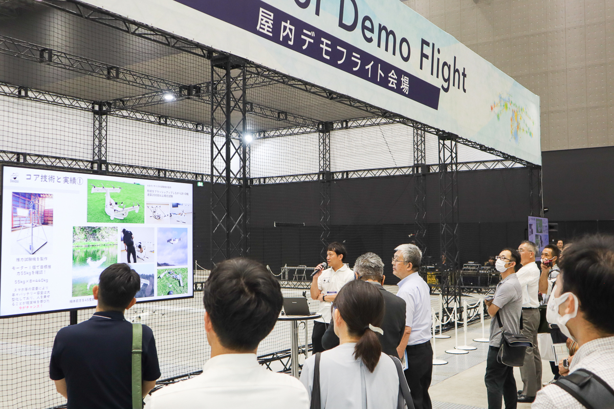 イベント内ではBeedolについて説明したプレゼンテーションと屋内デモフライトを実施しました。たくさんの方にBeedol2から一般販売向けに改良したBeedol3(4分の1スケール)のホバリング飛行をご覧いただきました。